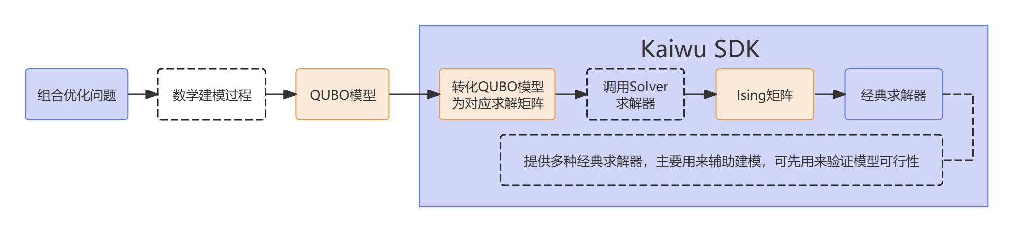 流程:安装调用Kaiwu SDK → QUBO Model → Ising 矩阵 → 经典求解器