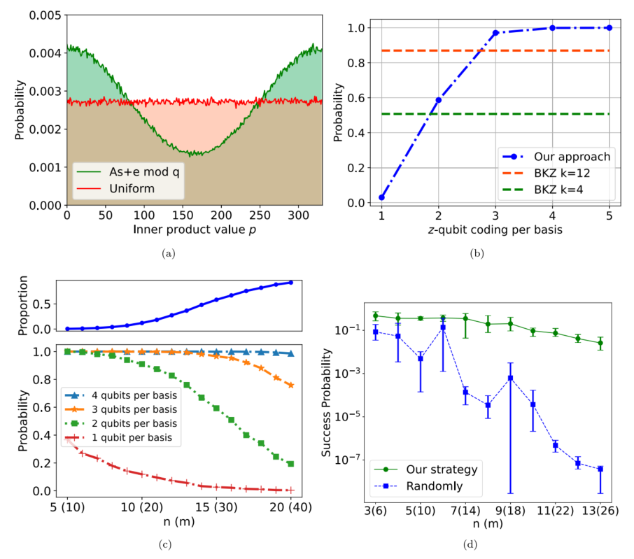 总的来说,论文提出的这种方法结合了经典计算的灵活性和量子计算的特定优势,是在当前量子技术水平下,迈向解决重要密码学难题的务实一步。不可避免地,这种方法仍面临一些挑战,例如要将这一算法扩展到解决具有实际密码学意义的更大规模 LWE 问题,其表现仍需进一步验证。