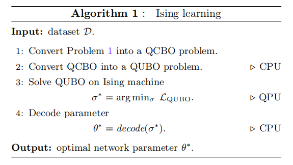 本文利用Ising机器求解速度的特性对量化神经网络QNN提出了一种创新性训练算法,通过将QNN的训练问题转化为二次有约束二值优化问题,后通过降阶和惩罚转化为二次无约束优化问题(QUBO),通过实验证明了该算法的科学性和正确性,为神经网络训练提供了新的计算范式。