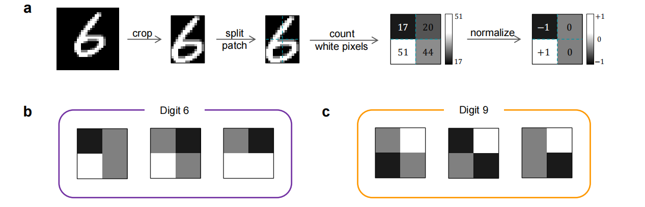 (3)验证QUBO的可解性:我们使用MNIST手写数据集中的6和9两个数字作为数据集,选取了4张图像(2张6,2张9)作为训练子集
