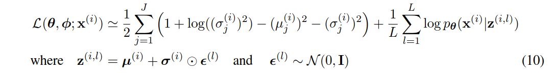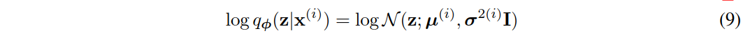 其中近似后验的均值和标准差\mu^{(i)}和σ(i)是编码多层感知机(MLP)的输出,即数据点x(i)的非线性函数和变分参数ϕ(见附录C)。