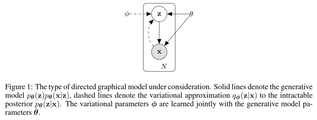 为了解决上述问题,我们引入一个识别模型 𝑞𝜙(𝑧|𝑥) ​ :一个逼近难解真后验 𝑝𝜃(𝑧|𝑥) ​ 的模型。请注意,与平均场变分推断(mean - field variational inference)中的近似后验相反,它不一定是阶乘,其参数 Φ ​ 也不是从某种封闭形式的期望中计算出来的。相反,我们将引入一种与生成模型参数 𝜃 ​ 一起学习识别模型参数 Φ ​ 的方法。