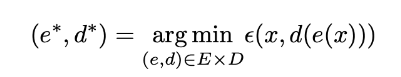 因此,直观地说,整个自动编码器架构(autoencoder architecture, 编码器+解码器)为数据创造了一个瓶颈,它确保只有信息的主要结构化部分可以通过并被重构。看看我们的总体框架,( E )族编码器是由编码器网络架构定义的,( D )族解码器是由解码器网络架构定义的,编码器和解码器的搜索是通过这些网络的参数梯度下降来最小化重构误差的。