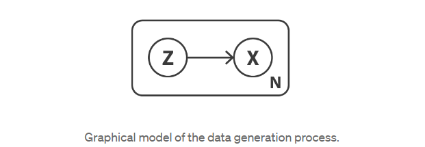 让我们首先定义一个概率图形模型来描述我们的数据。我们用x表示代表我们数据的变量,并假设x是由未直接观察到的潜在变量z(编码表示)生成的。因此,对于每个数据点,假设以下两步生成过程: