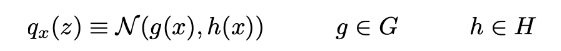 在这里,我们将通过高斯分布qx(z)来近似p(z|x),其均值和协方差由参数x的两个函数g和h定义。这两个函数应该分别属于函数和Rd和H族,稍后将详细说明,但应该是参数化的。因此我们可以表示
