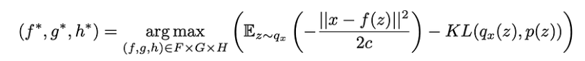 到目前为止,我们已经设置了一个概率模型,该模型依赖于三个函数f,g和h,并使用变分推断来表达要解决的优化问题,以便得到f∗,g∗和h∗,这些模型给出了最佳的编解码方案。因为我们不容易在整个函数空间上进行优化,所以我们限制了优化域并决定将f,g和h表示为神经网络。因此,F,G和H分别对应于由网络架构定义的函数族,并且对这些网络的参数进行优化。
