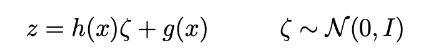 与对p(z|x)建模的编码器部分相反,我们考虑了均值和协方差都是x(g和h)函数的高斯函数,我们的模型假设p(x|z)是协方差固定的高斯函数。定义高斯均值的变量z的函数f由神经网络建模,可以表示如下