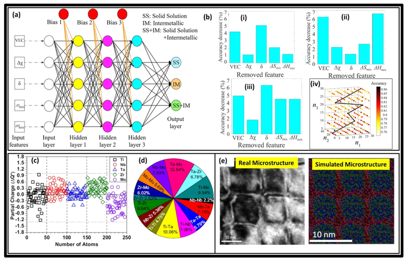 国际团队在《Computational Materials Today》2025 年 8 卷发表《Recent progresses on high entropy alloy development using machine learning》,系统阐述机器学习赋能高熵合金研发的进展。基于 OQMD 等数据库,通过随机森林、神经网络等算法,实现相结构预测准确率超 90%,结晶粒径与晶格应变预测相关系数分别达 0.993 和 0.989;设计的高硬度合金性能提升 24.8%,研发效率较传统方法提升数千倍,为航空航天、生物医疗等领域的高熵合金精准设计提供核心支撑。