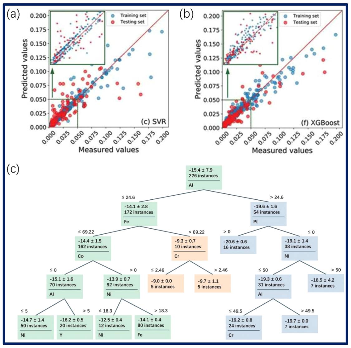 SVR、XGBoost、决策树算法预测高熵合金腐蚀速率的性能对比