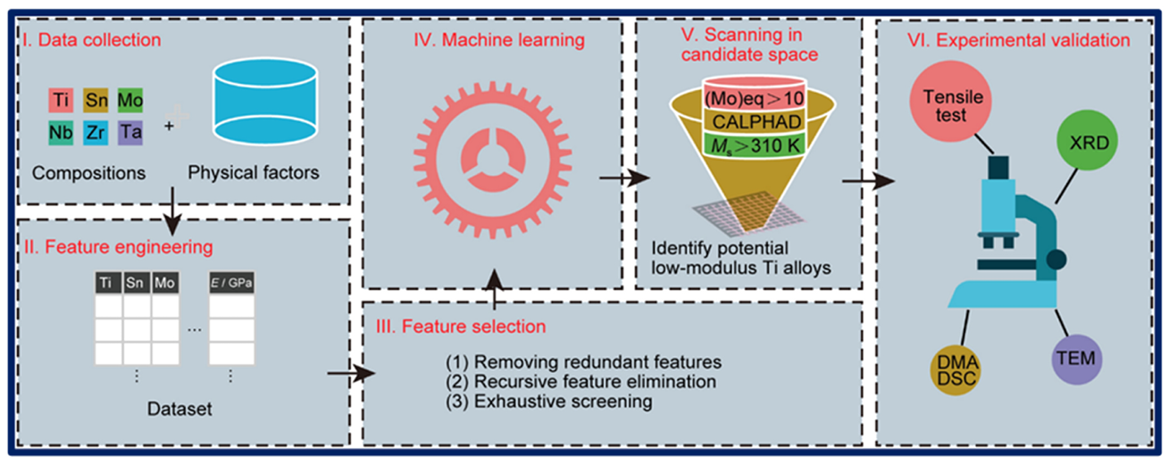 机器学习辅助低模量钛基高熵合金设计流程图