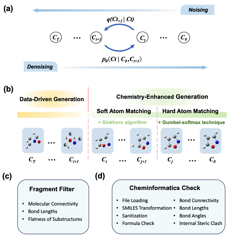 近几年火起来的扩散模型,给分子生成带来新希望,但多数模型都是纯数据驱动,缺少化学规律约束,很容易生成不符合化学常识的结构,而且必须用大量大分子数据训练,对没多少数据的新分子根本不友好。