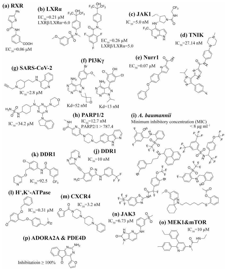 图3 经实验验证的 AI 设计药物分子与功能材料分子