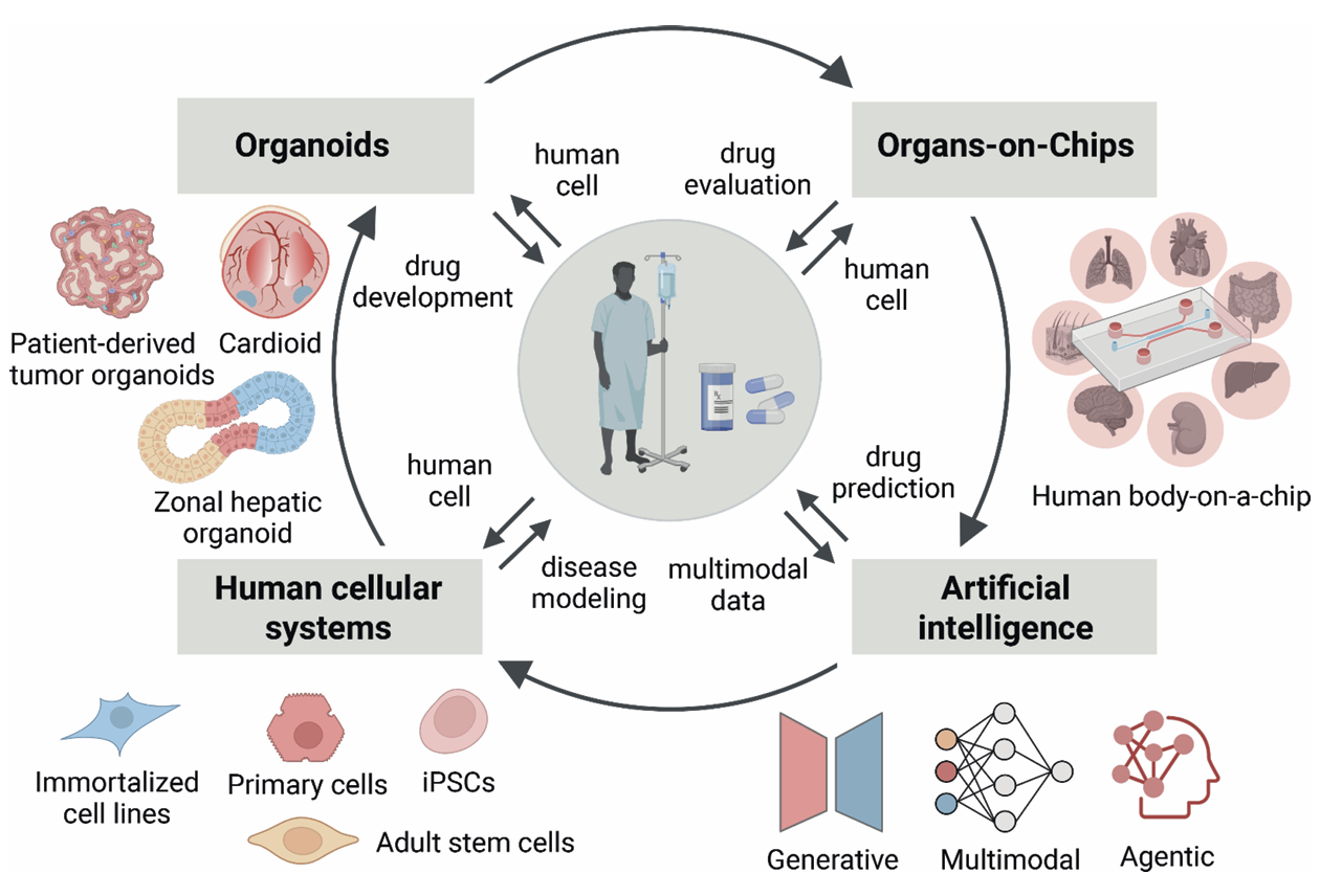 传统依赖动物实验的药物研发模式,受限于物种差异、效率低下、成本高昂与伦理压力,已难以支撑现代生物医药的创新需求。以 NAMs 为核心的以人为中心新范式,通过人类源细胞模型、类器官、器官芯片与人工智能计算模型的深度融合,构建了更贴近人体真实生理的药物研发体系,显著提升预测准确性、缩短研发周期、降低成本,并推动药物研究走向精准化与个体化。