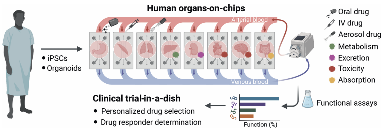 图4 多器官芯片系统与体外 “皿中临床试验” 平台