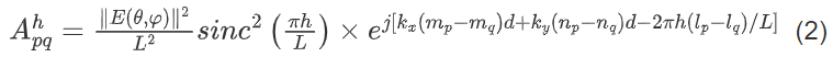 • Apq(θk, φ0)为超原子p, q在旁瓣角度θk下的时空耦合系数;