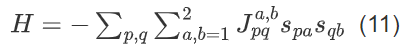 其中 Jpqa, b = cacb*Jpq(cb*为cb的共轭,a, b = 1, 2对应两个自旋比特),Jpq同 1 比特定义。