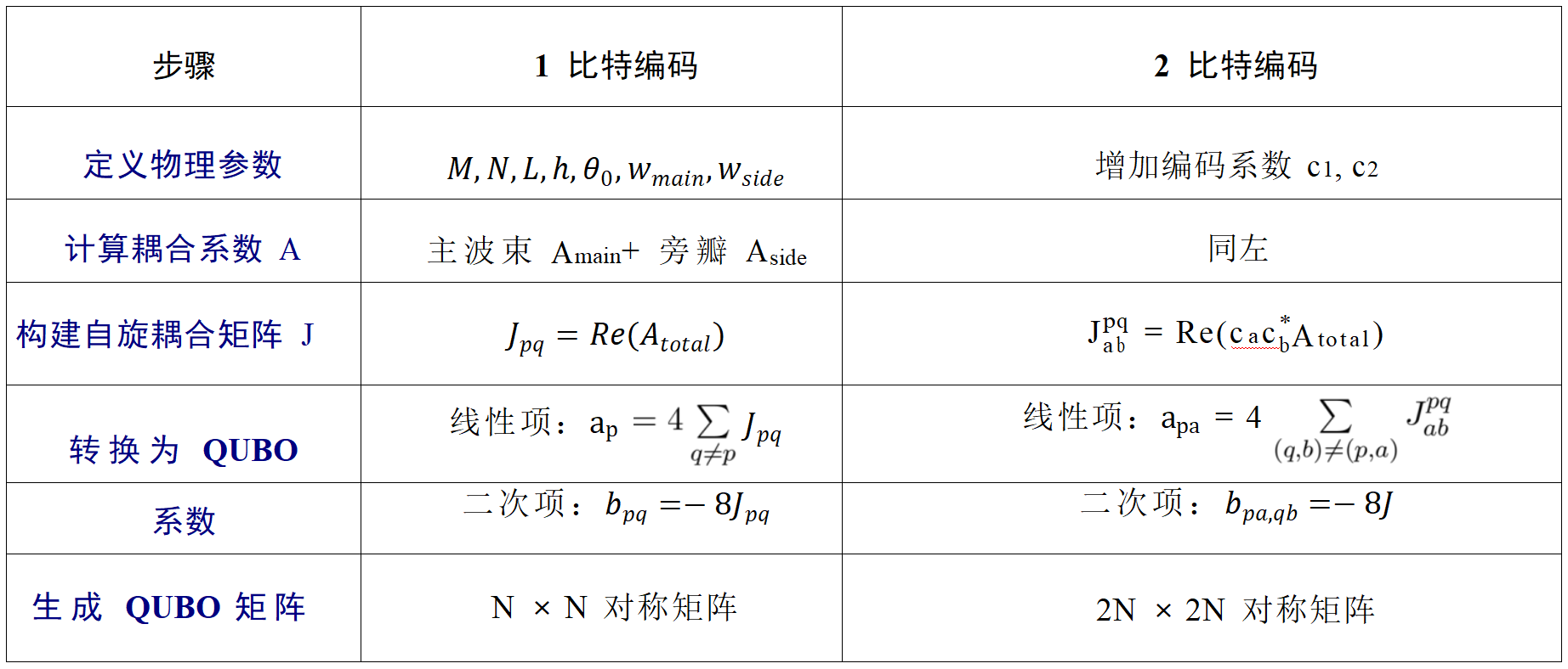 QUBO 矩阵形式:Q2bit ∈ ℝ2N × 2N (N为超原子总数,2N为自旋变量总数)。