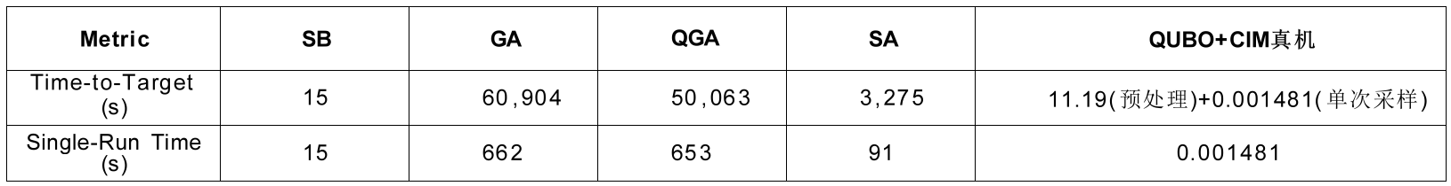 c.根据论文拟合的复杂度模型 T~N1.82,CIM 真机 3600 变量单次采样理论耗时 < 5 ms,远快于 SB 的秒级耗时。