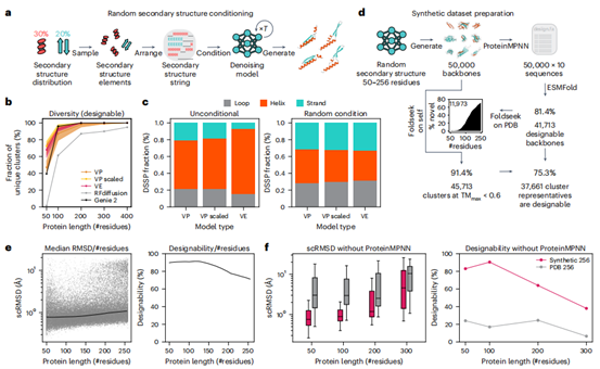 图4 | 随机二级结构条件化在牺牲设计能力的情况下最大化多样性