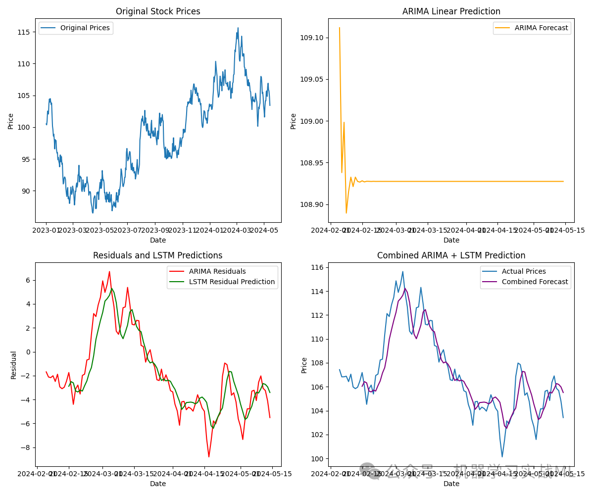 综合预测效果图:展示ARIMA+LSTM模型的整体性能。
