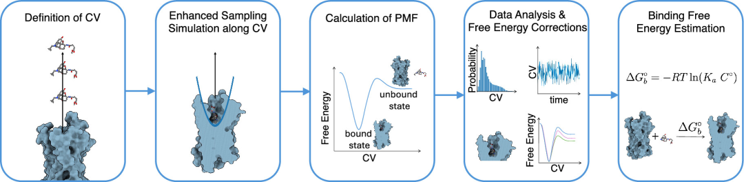 图2. 基于路径的结合自由能计算工作流程