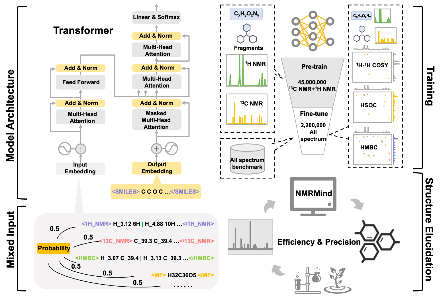 Xue, X., Sun, H., Sun, J., Patiny, L., Liu, X., Chen, K., Yan, J., Li, L., Liu, X., Xu, S. and Zhang, D., 2025. NMRMind: A Transformer-Based Model Enabling the Elucidation from Multidimensional NMR to Structures. Analytical Chemistry.
