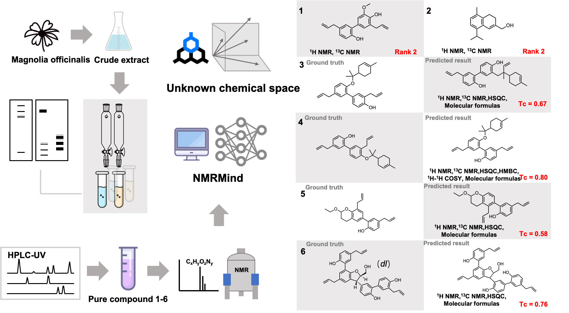 更为重要的是,NMRMind在真实场景中得到了成功验证。在天然产物研究中,该模型辅助鉴定了厚朴提取物中的6个全新化合物。