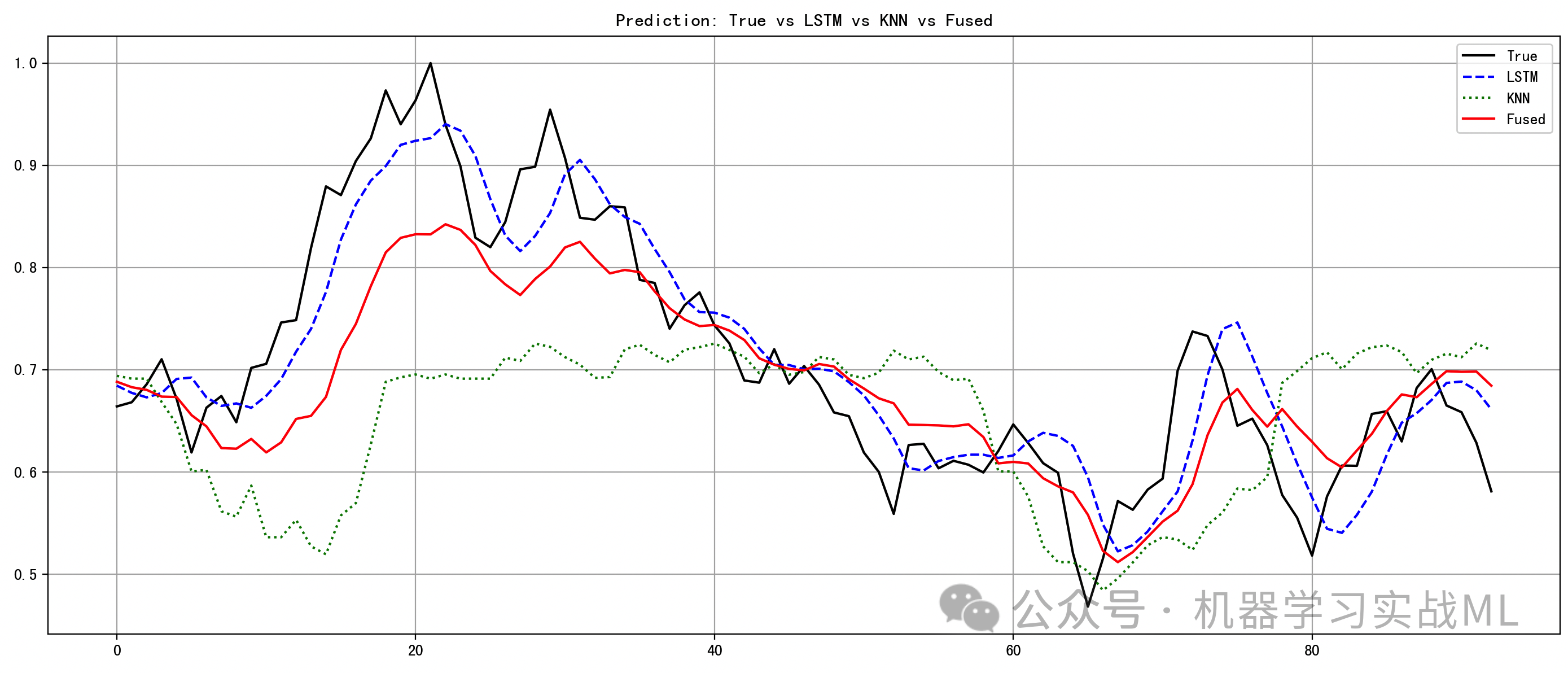 图3:真实值 vs LSTM vs KNN vs 融合预测