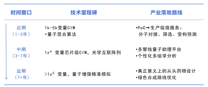 图 5-1 量子计算赋能生物制药的三阶段发展规划