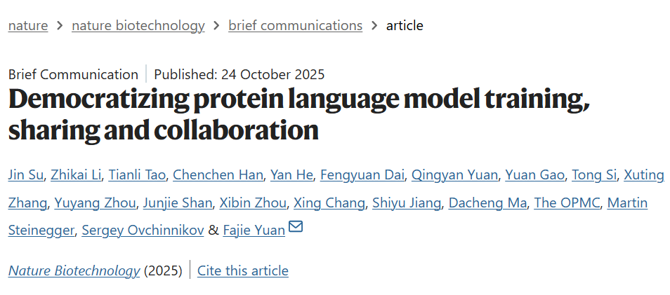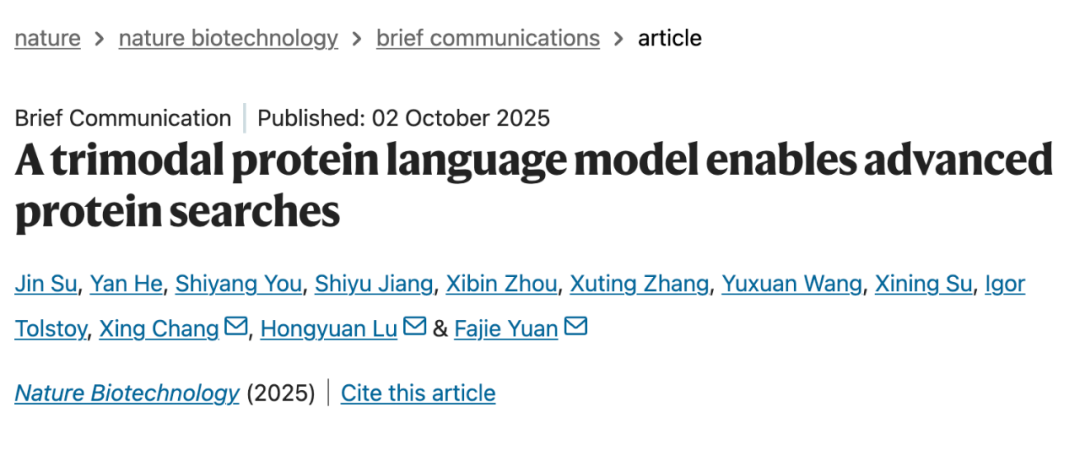 近日,这两项成果本月分别以“A tri-modal protein language model enables advanced protein searches”和“Democratizing protein language model training, sharing and collaboration”为题发表于Nature Biotechnology。