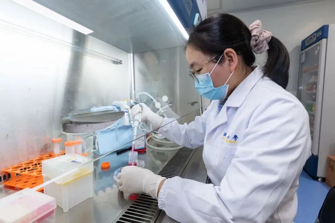 生命科学学院常兴实验室的博士后何燕,正在测试一种由ProTrek从包含2亿个蛋白质的数据库中搜索到的,与人类尿嘧啶DNA糖基化酶(UDG)功能相似的新蛋白质V1。