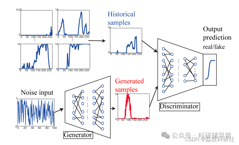 GAN背后的直觉是利用深度神经网络(DNN)的力量,既表达复杂的非线性关系(生成器),又对复杂信号进行分类(鉴别器)。GAN的关键见解是在生成器DNN和鉴别器DNN之间建立一个最小最大两人游戏(因此名称中使用了“对抗性”)