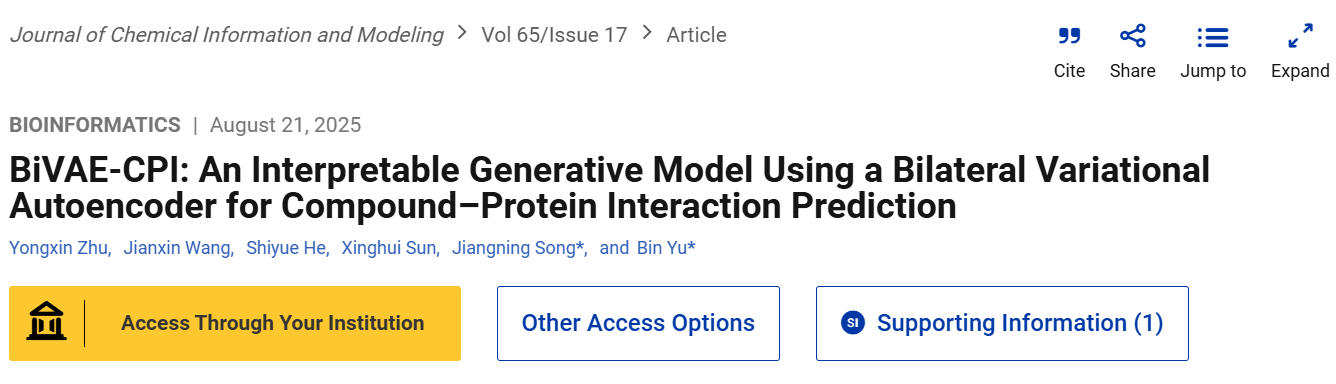 青岛科技大学团队在 Journal of Chemical Information and Modeling 发表《 BiVAE-CPI: An Interpretable Generative Model Using a Bilateral Variational Autoencoder for Compound–Protein Interaction Prediction 》,提出 BiVAE-CPI 模型。其融合双向 VAE、GIN 与门控卷积编码器,捕捉 CPI 全局关联与局部特征。在 Human 和 C. elegans 数据集上,AUC 达 99.1% 和 99.5%,AUPR 最高 99.6%,Precision 达 98.0%。面对 1:5 的不平衡数据,AUPR 提升 3.4%-36.2%,显著优于 11 种基线模型,为新药研发的 CPI 筛选提供高效方案。