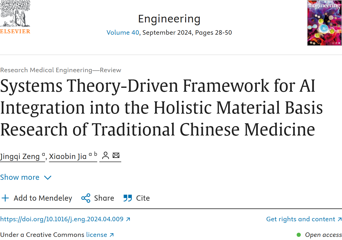 中国药科大学曾敬其、贾晓斌教授在中国工程院院刊《Engineering》发表了题为“Systems Theory-Driven Framework for AI Integration into the Holistic Material Basis Research of Traditional Chinese Medicine”的综述文章,提出基于系统论框架整合人工智能(AI)与中医药整体物质基础研究的创新方案,为深化中医药物质基础理解、推动传统医学与现代科技融合提供了新路径。