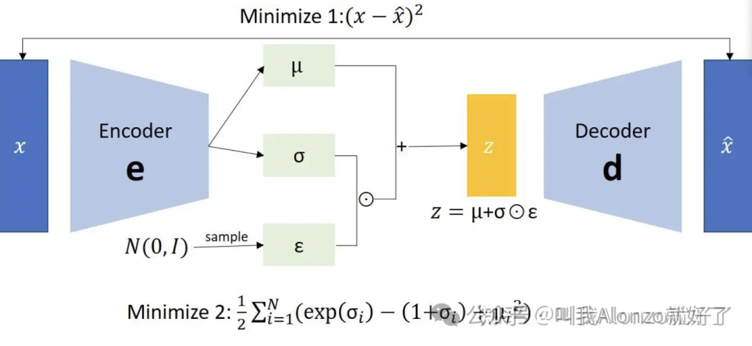 • 第二是正则项:这是编码器的任务。它强迫潜变量的分布接近标准正态分布。