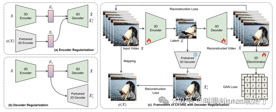 其三是图像和视频数据模态之间的潜在互补性。 众所周知,视频序列的每一个视频单帧,本身就是一个图像,视频VAE的难点,不仅要保证时序上的连续、一致性,同时也要保真单帧的质量。「如何利用二者之间潜在互补性」成为了一些现有方法关注的问题。