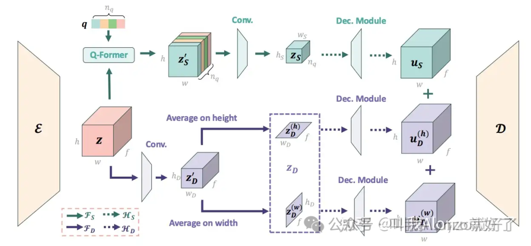 VidTwin出自《VidTwin: Video VAE with Decoupled Structure and Dynamics》一文中,目前已代表于CVPR 2025上。 这篇工作的VAE设计中将视频序列拆解为「结构」和「动力学」两部分:前者通过类似Q-Former的模块负责捕捉整体空间域内容和大范围运动,后者则专门负责表征细粒度的快速运动变化。