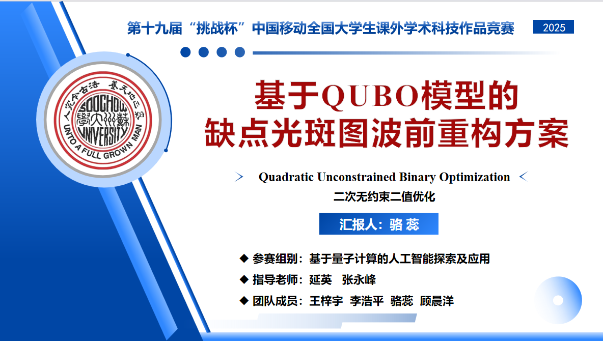 当量子计算邂逅自适应光学,会碰撞出怎样的科技火花?今天,我们有幸邀请到第十九届“挑战杯”中国移动全国大学生课外学术科技作品竞赛的特等奖队伍 —— 来自苏州大学的量子创新团队,他们将带我们走进光斑图波前重构的研究世界,分享用 QUBO 模型破解光学难题的精彩历程!