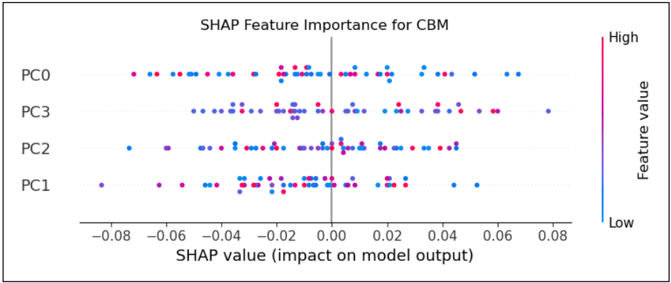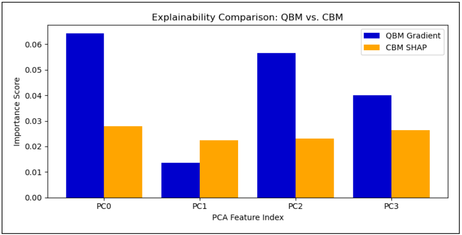 QBM梯度与CBM SHAP的对比图:QBM明显更重视PC0和PC2(图源论文)