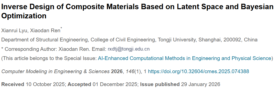 复合材料的微观结构直接决定其力学强度、韧性等核心性能,传统 “性能→结构” 的逆向设计面临 “生成模糊、优化低效” 的双重瓶颈。同济大学团队在《Computer Modeling in Engineering & Sciences》发表研究,提出 VAE-CDGM 混合生成模型结合贝叶斯优化的逆向设计框架,既解决了传统 VAE 生成微观结构模糊的问题,又实现了目标性能的快速精准匹配,为复合材料高效研发提供全新方案。
