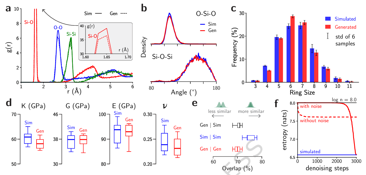 以无定形 SiO₂为验证体系,模型生成结构与传统 MD 模拟几乎无法区分