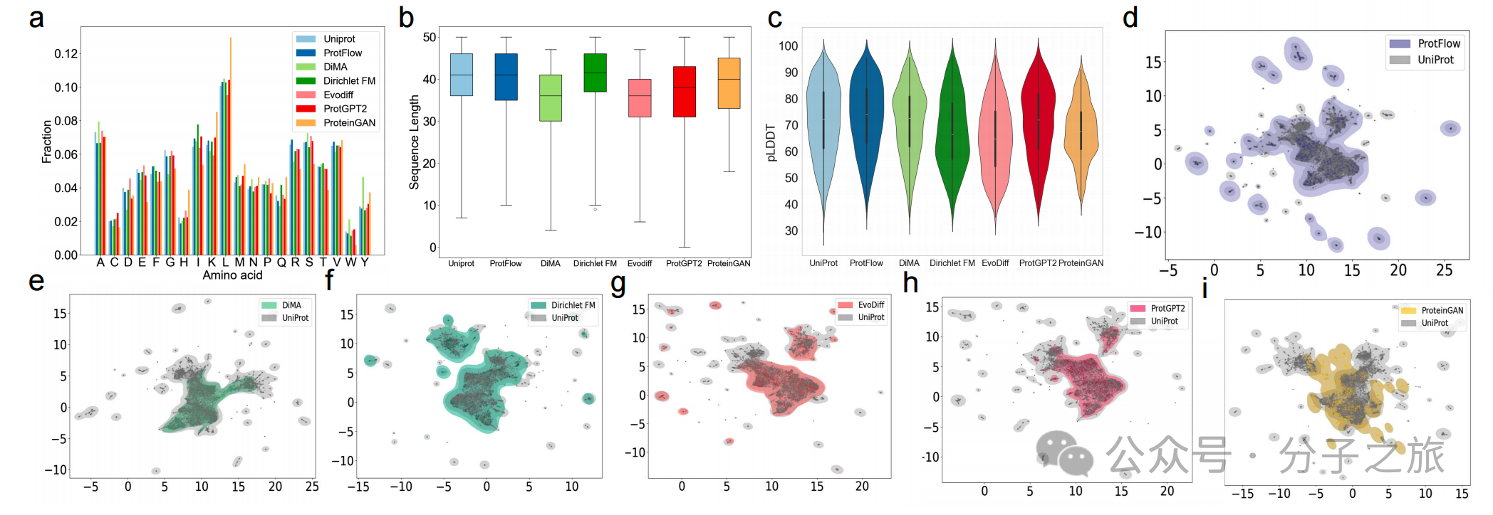 图 2:UMAP可视化显示,只有ProtFlow能够全面覆盖天然肽段
